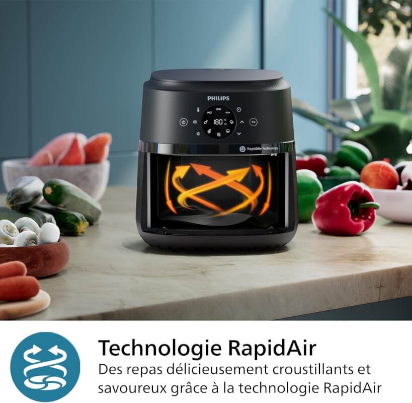 - TECHNOLOGIE RAPIDAIR : Extérieur croustillant, intérieur tendre, avec un minimum d’huile. La plaque unique StarPlate assure un flux d’air parfait pour une cuisson toujours rapide et savoureuse