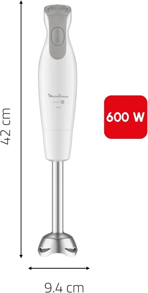 - MIXEUR FACILE À CONTRÔLER : poignée ergonomique avec déclenchement progressif de deux vitesses, afin de maîtriser la texture de vos préparations