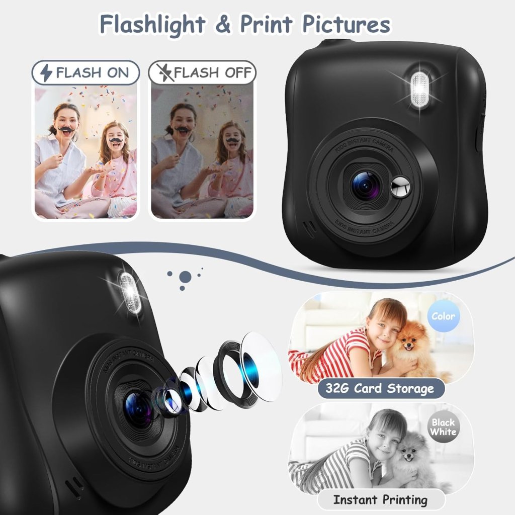- 【Multifonctionnel Appareil Photo Instantané】 : Notre appareil photo instantané pour enfants propose l’impression instantanée, écran HD de 2,0 pouces, vidéos 1080P, zoom numérique 10x, flash, time-lapse, la prise de vue en continu, jeux de puzzle, filtres, rafale, et la fonction MP3. La photographie,dessin, musique,vidéo et les jeux sont les divertissements préférés des enfants, ce qui peut stimuler leur envie et leur intérêt pour la photographie.
