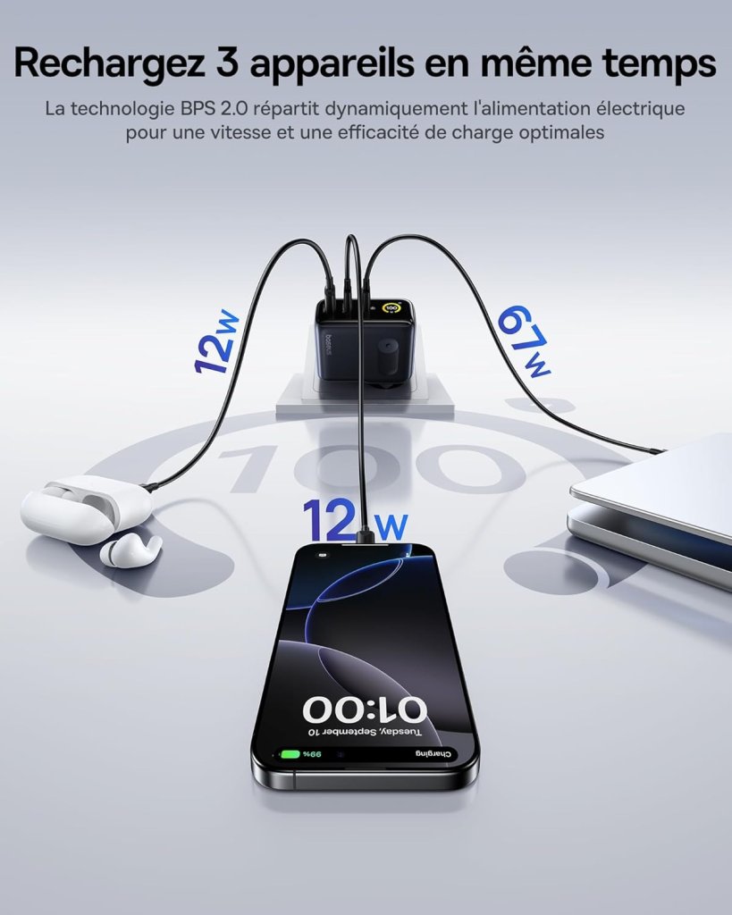 Bon plan disponible chez Amazon : le Chargeur ultra-rapide 100W 3-en-1 Baseus Picogo (2 ports USB-C et 1 USB-A) passe à 27,07€ au lieu de 69,99€ habituellement. Très bon prix.
