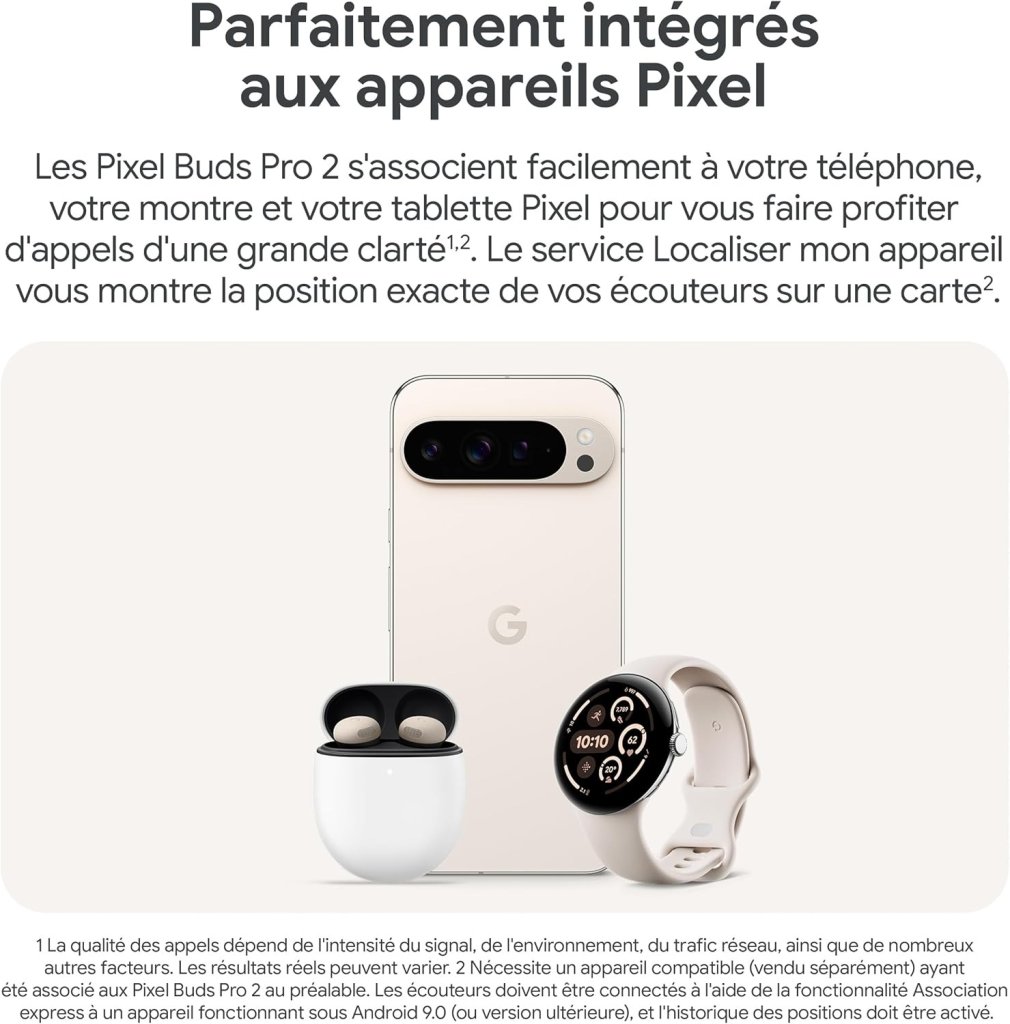 - Les Pixel Buds Pro 2 s’associent facilement à votre téléphone, votre montre et votre tablette Pixel pour vous faire profiter d’appels d’une grande clarté. Le service Localiser mon appareil vous montre la position exacte de vos écouteurs sur une carte.