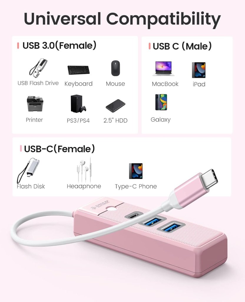 - [Grande Compatibilité] ORICO 3 port USB hub s’applique à divers appareils: ordinateur portable, tour PC, Xbox, PS4, lecteur flash, clavier, souris, lecteur de carte, HDD, adaptateur OTG de téléphone mobile, imprimante, caméra, ventilateur USB et câble USB