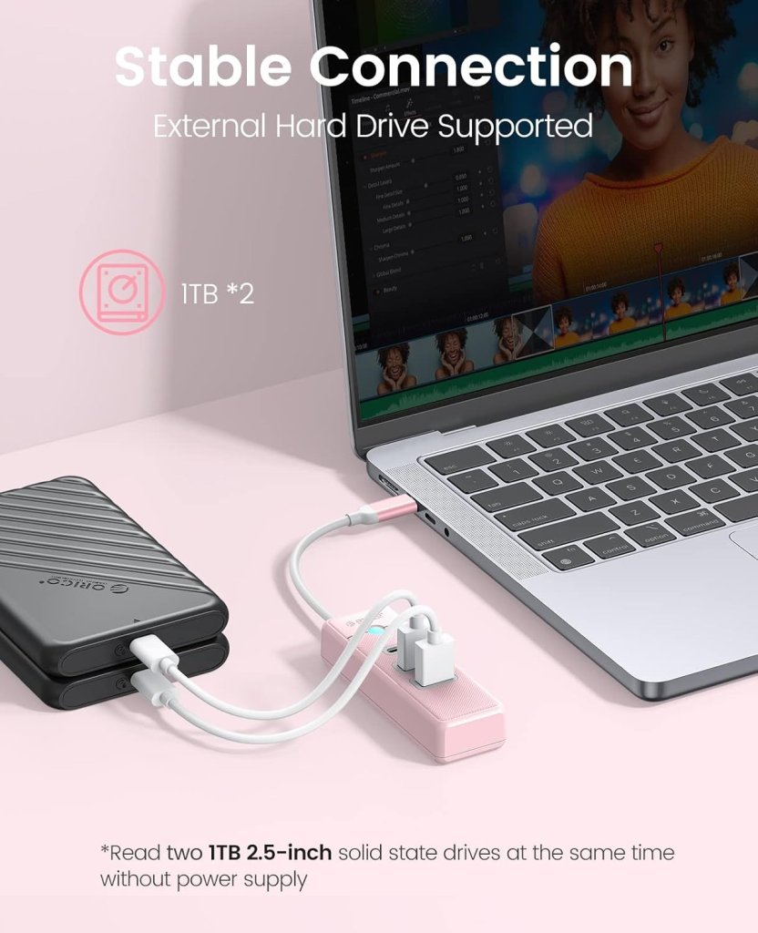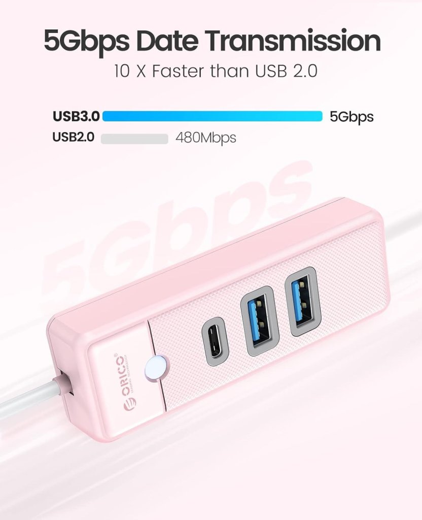 - [5Gbps Haute Vitesse] ORICO USB 3.0 hub peut transmettre jusqu’à 5Gbps de données, 10 fois plus rapide que USB 2.0. Les films HD peuvent être joués en quelques secondes. Rétrocompatible avec USB 2.0, 1.1. Deux SSD 1tb 2.5 « peuvent être lus simultanément sans alimentation électrique. La fonction OTG est prise en charge. La fonction OTG nécessite non seulement le support Hub, mais aussi le support mobile