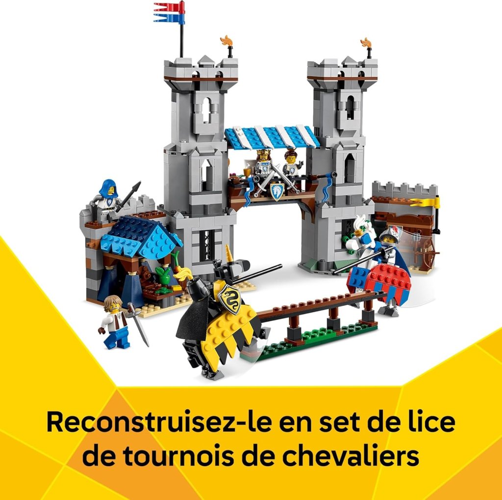 Deal qui revient de temps en temps : le set Lego Creator 3-en-1 31168 Le Château Médiéval des Chevaliers (3 maquettes, avec 6 mini-figurines) est disponible chez Amazon et Auchan à 84,99€ au lieu de 99,99€ habituellement.