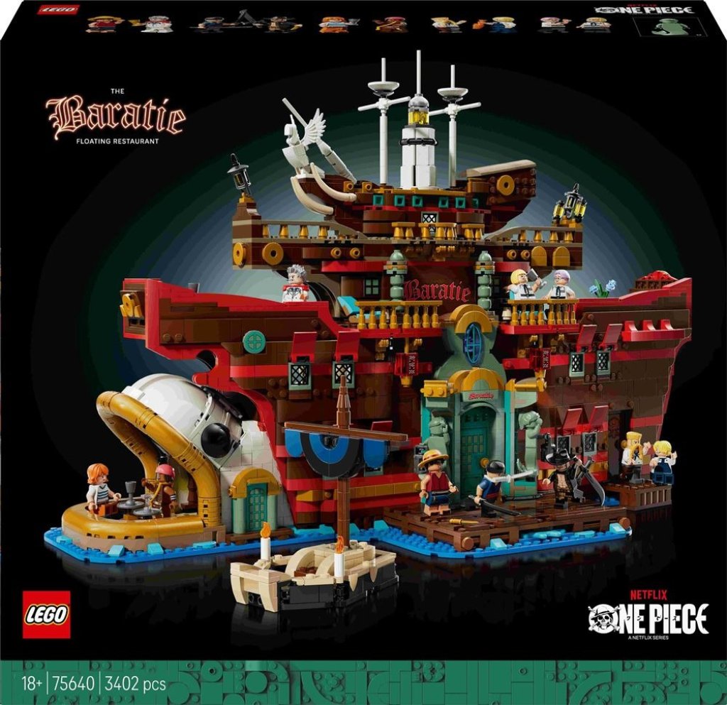 Le restaurant flottant Baratie LEGO® ONE PIECE (75640) recrée le décor de nombreuses aventures de ONE PIECE. Ce modèle, parfait pour les adultes fans de l’adaptation en prise de vue réelle de ONE PIECE sur Netflix, regorge de détails et de minifigurines fidèles à la série.