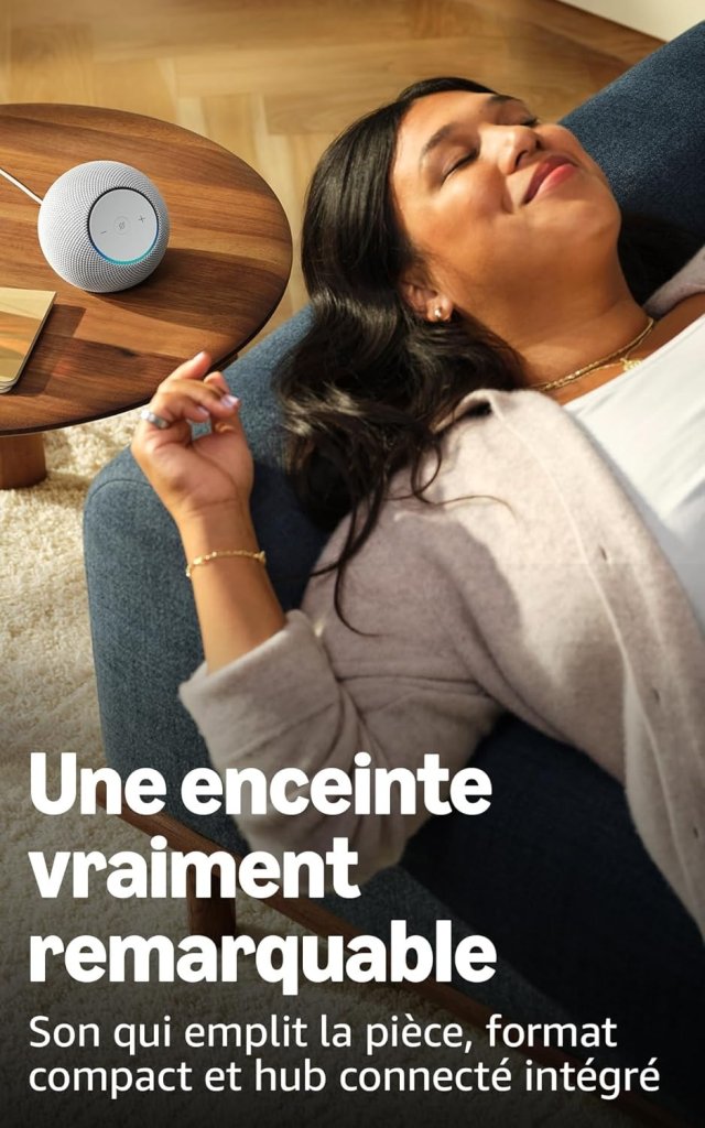 - De la musique à vos oreilles : avec 3 fois plus de basses qu’Echo Dot (modèle 2022), cette enceinte connectée se fond parfaitement dans n’importe quel espace. Écoutez de la musique via vos services de streaming préférés tels qu’Amazon Music, Apple Music, Deezer, Spotify et bien plus, en profitant de basses profondes et d’une clarté améliorée. On en redemande !