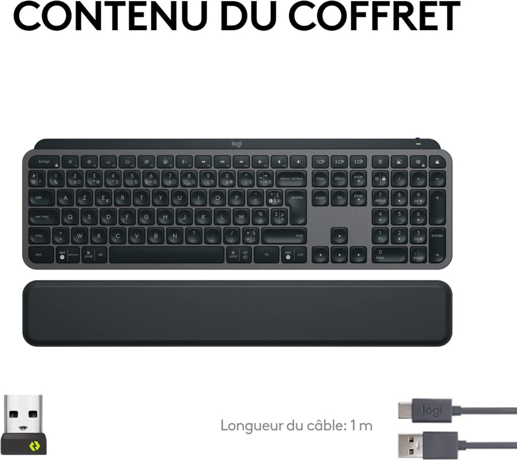 - Éclairage Intelligent : Les touches du clavier rétroéclairé s’adaptent à l’environnement et s’illuminent lorsque vous approchez vos mains. Personnalisez les options d’éclairage sur Logi Options+ (1).