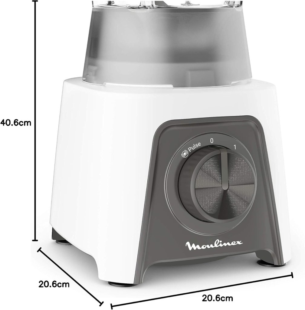 - Mélangeur sur socle Moulinex Blendeo + LM2C01, capacité 450 W, 1,5 L, acier inoxydable, 2 vitesses, 2 vitesses, lames Zelkrom robustes, verrouillage intelligent