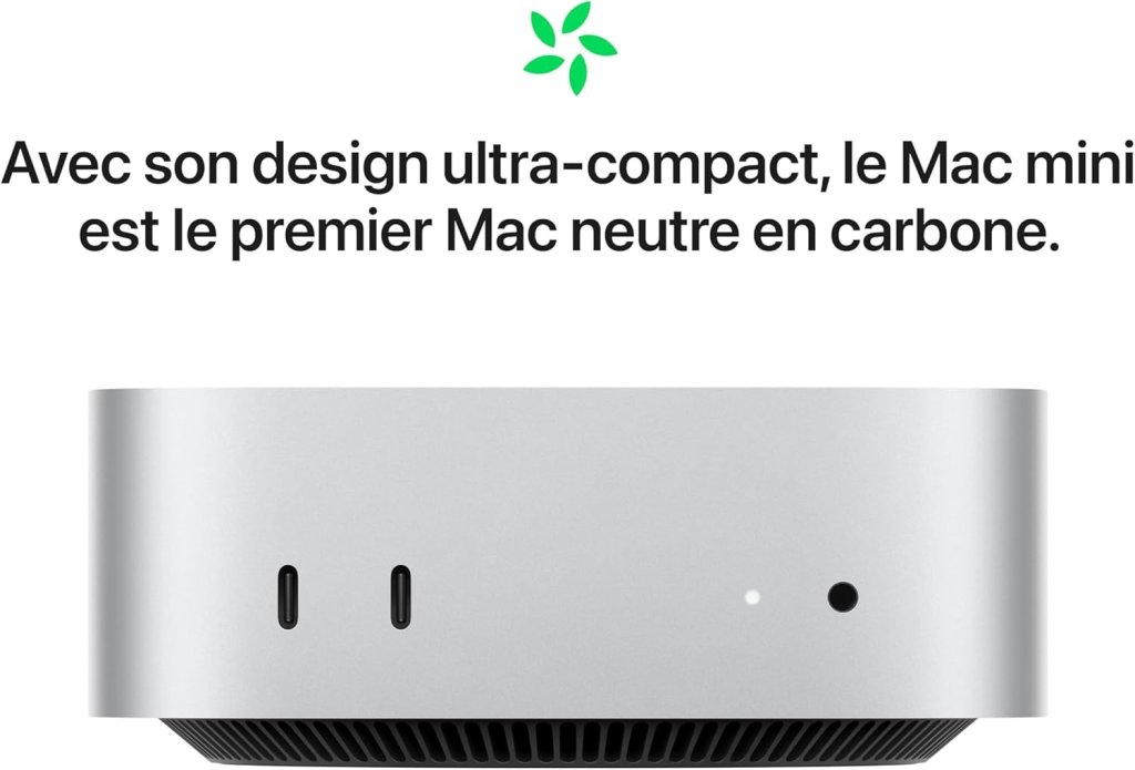 - ENCORE PLUS PETIT. TELLEMENT PLUS PUISSANT – L’ordinateur de bureau Mac mini est un véritable concentré de puissance dans un format carré ultra-compact mesurant moins de 13 centimètres de côté. Conçu pour Apple Intelligence*. Repensé autour de la puce Apple, pour permettre à la spectaculaire M4 de déployer toute sa vitesse et ses capacités. Et équipé de ports très pratiques à l’avant comme à l’arrière.