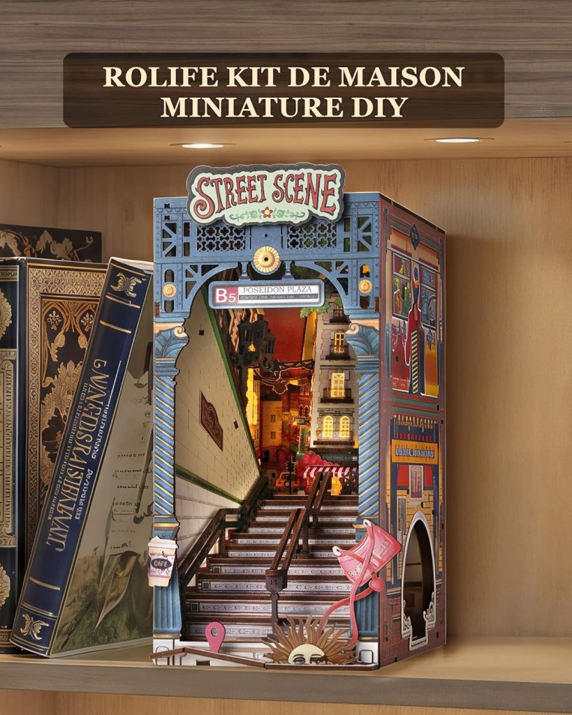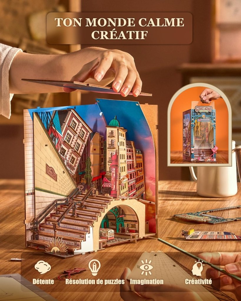 Un cadeau de Noël parfait, pour les fans de Book Nook ou pour découvrir cette nouvelle tendance : ce set Rolife Book Nook Scene de Rue – Kit Porte-Livres en Bois 3D à construire passe chez Amazon à 18,37€ au lieu de 45,95€ en cochant le coupon.