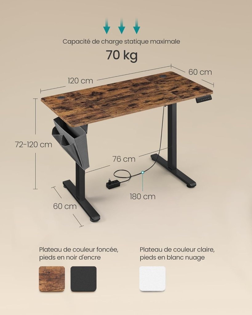 Bon plan Amazon : le bureau électrique assis-debout 120×60 cm SONGMICS, très bien évalué par les consommateurs, passe à 77,99€ au lieu de 99,99€ avec le coupon.
