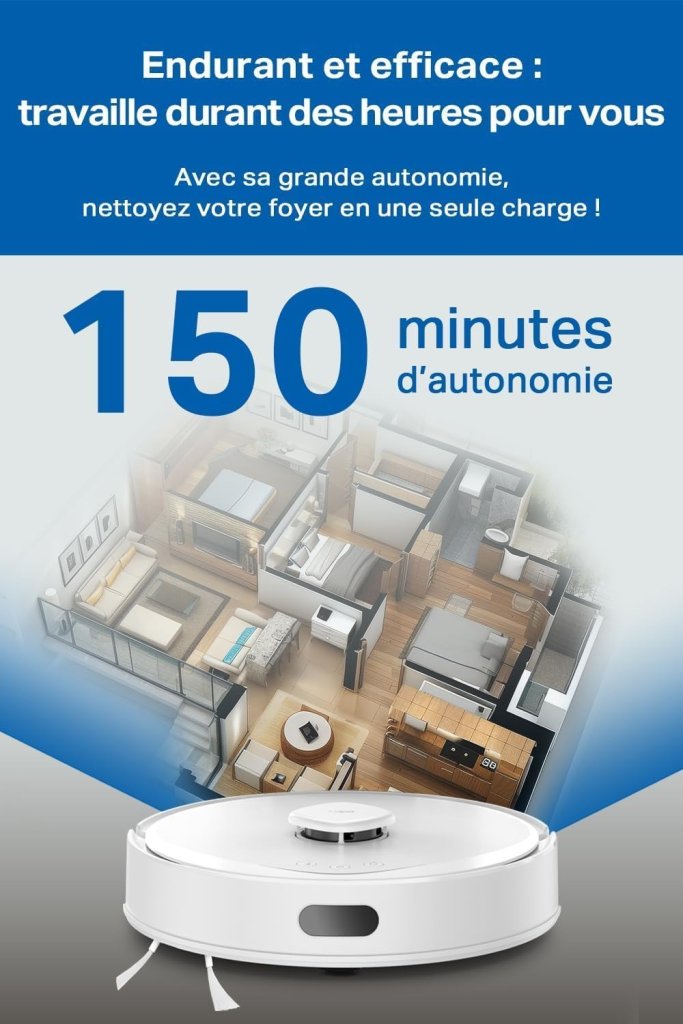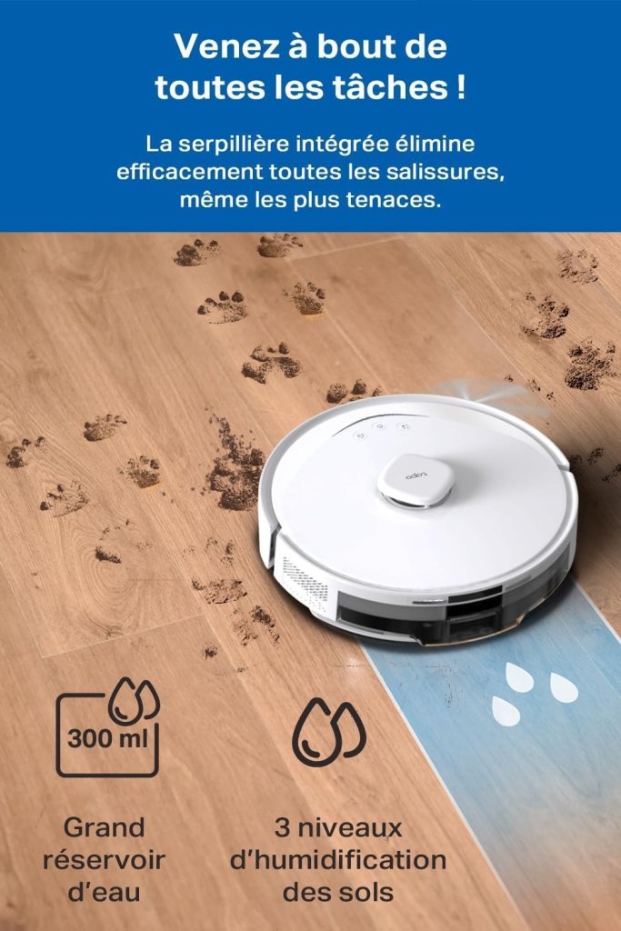 - 4‑EN‑1 ASPIRATEUR ET LAVEUR – Ce robot aspirateur laveur capture poussière et poils, lave le sol, aspire et passe la serpillière simultanément pour un nettoyage complet