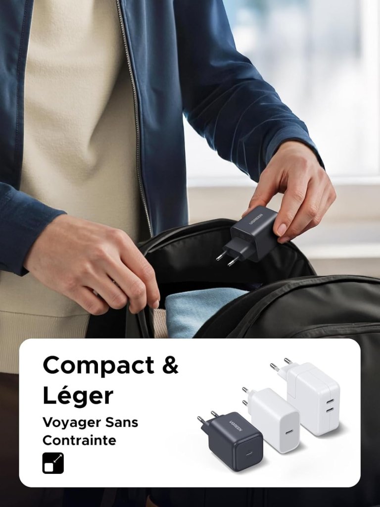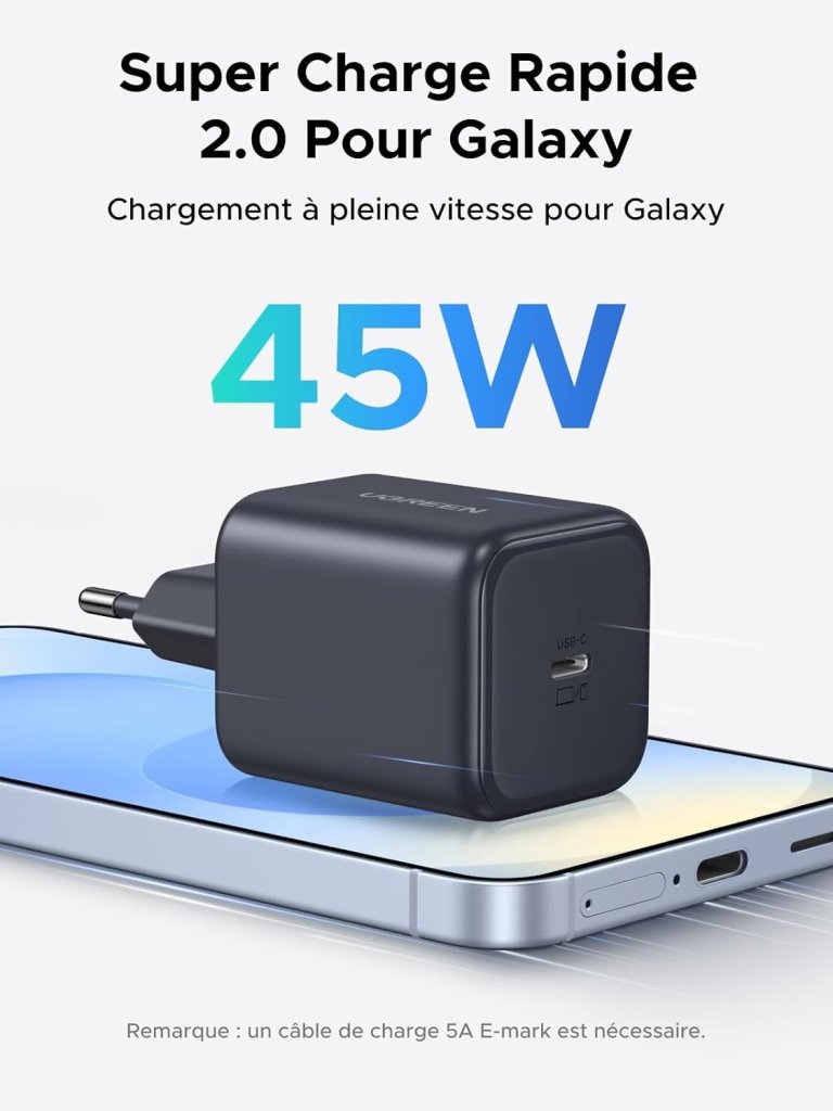 Sur Amazon, le chargeur rapide USB C UGREEN 45W (technologie GaNInfinity) passe à 12,99€ au lieu de 19,99€.