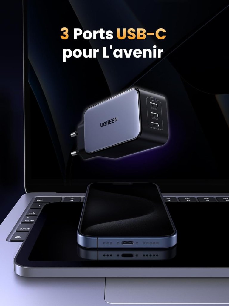 Bon plan Amazon : la prise /chargeur rapide triple USB C UGREEN Nexode 65W dotée de la technologie GaNInfinity est dispo en ce moment à 23,99€ au lieu de 27,99€, prix habituel.